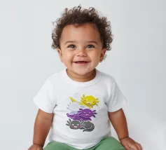 Un simpatico axolotl rosa è raffigurato mentre gioca a un videogioco con un controller per console. Lo sfondo è in tinta unita marrone e mette in risalto l'espressione giocosa e il design vivace del personaggio animato.