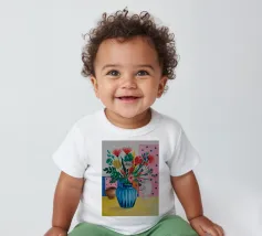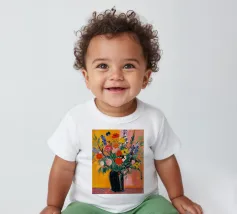 T-shirt per neonati di alta qualità realizzata al 100% in cotone biologico certificato.