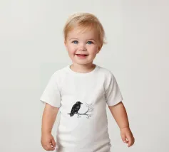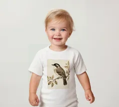 Un uccello è appollaiato su un ramo con grappoli d'uva viola circondati da foglie verdi. I colori vivaci dell'uva e delle foglie creano un contrasto sorprendente.