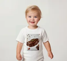 Una bella bistecca alla griglia è adagiata su un piatto bianco, ornato dai segni della griglia. La calda luce del sole mette in risalto i suoi colori ricchi, creando un'atmosfera invitante perfetta per il pranzo.