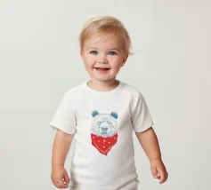T-shirt per neonati di alta qualità realizzata al 100% in cotone biologico certificato.