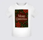Una calda ed elegante illustrazione natalizia con vibranti stelle di Natale, rami di pino, bacche e stelle dorate che circondano un messaggio senza tempo di "Buon Natale". I ricchi rossi e i verdi intensi creano un'atmosfera classica e festosa, perfetta per interni accoglienti, angoli regalo e decorazioni stagionali.