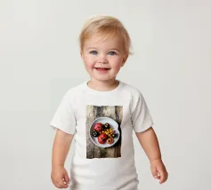 T-shirt per neonati di alta qualità realizzata al 100% in cotone biologico certificato.