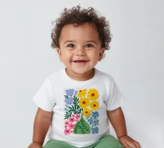 T-shirt per neonati di alta qualità realizzata al 100% in cotone biologico certificato.