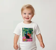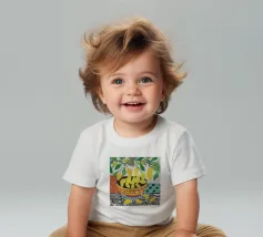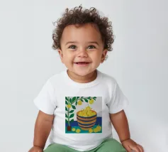 T-shirt per neonati di alta qualità realizzata al 100% in cotone biologico certificato.