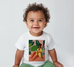 Un bellissimo ritratto stilizzato di due volti di donna di profilo, leggermente sovrapposti. I colori caldi e tenui e lo sfondo a righe creano un'opera d'arte delicata e intima che parla di legami e identità.
