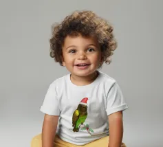 Un'immagine di due inseparabili della pesca appollaiati l'uno accanto all'altro. Elementi floreali aggiunti digitalmente. Sembrano molto rilassati e guardano l'osservatore.