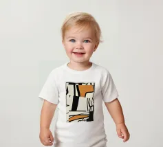 Forme astratte in nero, bianco e oro creano una composizione dinamica con curve fluide e angoli acuti. Il gioco di colori aggiunge profondità e movimento, suggerendo un senso di energia e contrasto.