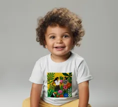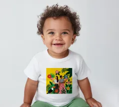 T-shirt per neonati di alta qualità realizzata al 100% in cotone biologico certificato.