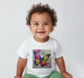 T-shirt per neonati di alta qualitร  realizzata al 100% in cotone biologico certificato.