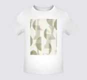 Il disegno presenta un'accattivante disposizione di cerchi, rettangoli e forme astratte di foglie sovrapposte, che alludono sottilmente a forme organiche all'interno della struttura. La texture granulosa aggiunge profondità e interesse visivo.