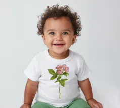 T-shirt per neonati di alta qualità realizzata al 100% in cotone biologico certificato.