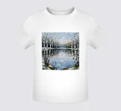 Questo accattivante dipinto a olio originale dà vita alla tranquilla bellezza di un paesaggio invernale. Utilizzando un'esclusiva tecnica a spatola, l'artista crea una texture di impasto straordinariamente spessa che fa sembrare la scena quasi tridimensionale. Il dipinto presenta maestose betulle con la loro caratteristica corteccia bianca e nera che incorniciano un lago calmo e riflettente. I toni freddi del blu, del grigio e del bianco dominano la tela, intervallati dai caldi accenni di oro e marrone del fogliame lontano. La pesantezza della pittura cattura le cortecce scoscese degli alberi e le dolci increspature del lago.
