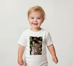 T-shirt per neonati di alta qualità realizzata al 100% in cotone biologico certificato.