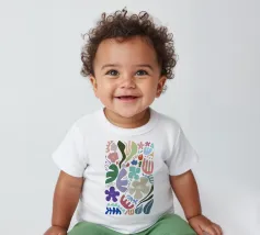 T-shirt per neonati di alta qualità realizzata al 100% in cotone biologico certificato.