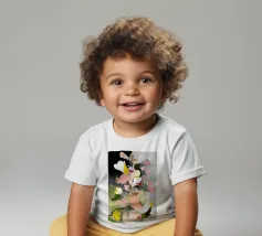 T-shirt per neonati di alta qualità realizzata al 100% in cotone biologico certificato.