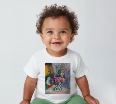 T-shirt per neonati classica e confortevole, con vestibilità morbida e pratici bottoni a pressione.