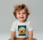 T-shirt per neonati di alta qualitร  realizzata al 100% in cotone biologico certificato.