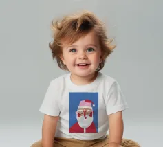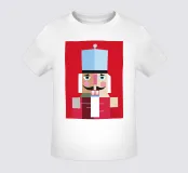 Uno schiaccianoci dall'interpretazione geometrica in un moderno design piatto, creato con forme chiare e un equilibrato spettro di colori rosso, beige e blu pastello. La sua espressione pacata e serena conferisce al classico motivo natalizio un tocco fresco e contemporaneo. La simmetria angolare, i baffi e i dettagli minimalisti rendono l'illustrazione una dichiarazione di stile e modernità per il periodo natalizio.