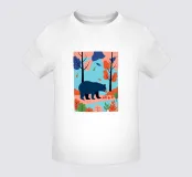 Godetevi la bellezza naturale di una foresta autunnale con questa illustrazione di un orso in cerca di cibo. I colori caldi e il design minimalista creano un'atmosfera pacifica e rasserenante.