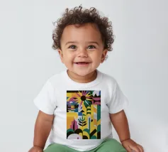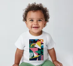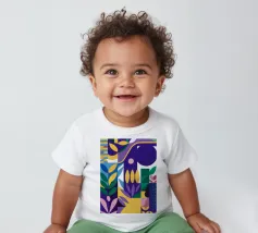 T-shirt per neonati di alta qualità realizzata al 100% in cotone biologico certificato.