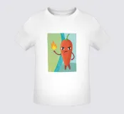 La simpatica illustrazione raffigura un peperoncino rosso con un'espressione arrabbiata e il fuoco nelle mani.