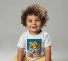 Una moderna natura morta di due pere gialle in una ciotola con un audace motivo a zig zag in bianco e nero. Lo sfondo a scacchi rosa e viola aggiunge un ulteriore livello di grafica giocosa alla composizione.