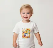 T-shirt per neonati di alta qualitร  realizzata al 100% in cotone biologico certificato.