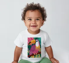 T-shirt per neonati di alta qualità realizzata al 100% in cotone biologico certificato.