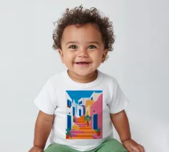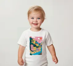 T-shirt per neonati classica e confortevole, con vestibilità morbida e pratici bottoni a pressione.