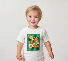 T-shirt per neonati di alta qualità realizzata al 100% in cotone biologico certificato.