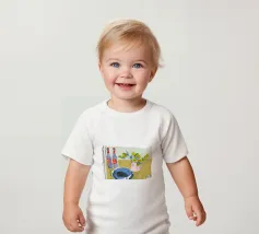 T-shirt per neonati di alta qualità realizzata al 100% in cotone biologico certificato.