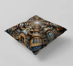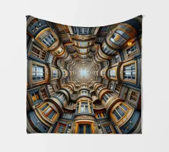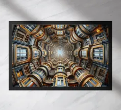 Una straordinaria composizione architettonica che mostra un tunnel simmetrico di finestre dal design intricato, dettagli ornamentali e accenti vivaci che convergono verso un punto di fuga luminoso. La prospettiva dinamica evidenzia la maestria artigianale e crea un'illusione di profondità infinita.