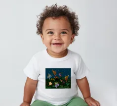 T-shirt per neonati di alta qualità realizzata al 100% in cotone biologico certificato.