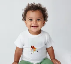 T-shirt per neonati di alta qualità realizzata al 100% in cotone biologico certificato.