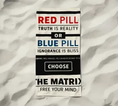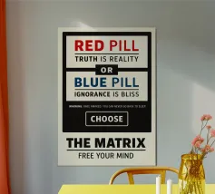 Stampa di Matrix, poster cinematografico alternativo, arte murale minimale, b&n, pillola rossa, pillola blu, verità, realtà, scelta, distopia, regalo per i fan del cinema