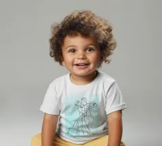 T-shirt per neonati di alta qualità realizzata al 100% in cotone biologico certificato.