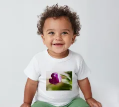 T-shirt per neonati di alta qualità realizzata al 100% in cotone biologico certificato.