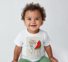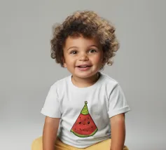 Il personaggio di un'anguria fresca indossa occhiali da sole e un cappello mentre pronuncia un gioco di parole con il testo "Sei un melone!" in bolle vocali.