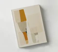 Forme geometriche astratte in toni tenui di grigio, bianco e giallo creano una composizione minimalista. La disposizione di rettangoli e archi suggerisce un senso di equilibrio e semplicità.