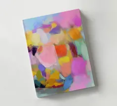 Quest'opera d'arte astratta dai tenui colori pastello cattura un'atmosfera calma e armoniosa. Le morbide pennellate e le tenui tonalità di beige, azzurro e rosa conferiscono al dipinto un'eleganza moderna e minimalista che si adatta perfettamente a qualsiasi casa contemporanea.