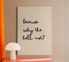 Aggiungete un tocco di spontaneità e divertimento al vostro spazio con questa stampa Because Why the Hell Not! Caratterizzato da una giocosa tipografia in stile manoscritto, questo disegno cattura l'atteggiamento spensierato di abbracciare le avventure della vita. Perfetta per qualsiasi stanza che necessiti di un po' di umorismo e audacia, questa stampa ricorda di dire sì alle nuove esperienze, di cogliere le opportunità e di vivere il momento. Ideale per camere da letto, uffici o come regalo per qualcuno che vive la vita alle proprie condizioni.