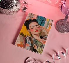 Questa suggestiva opera d'arte raffigurante una giovane musa messicana a un tavolo verde illumina qualsiasi ambiente con colori vivaci. Il suo giocoso top a righe e il fiocco per capelli cremisi spiccano su uno sfondo dorato, fondendo l'atmosfera di metà secolo con il fascino boho chic. Ideale per stampe d'arte, tessuti e decorazioni per la casa, questo disegno irradia calore e personalità. Perfetto per chi è alla ricerca di accenti eclettici, il pezzo fonde influenze culturali e stile retrò per creare un punto focale accattivante che ispira. Celebra il patrimonio culturale.