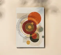 Una composizione astratta ispirata al Bauhaus, caratterizzata da cerchi concentrici sovrapposti, linee radiali e calde tonalità della terra. La geometria equilibrata e le texture raffinate evocano un senso di calma e ordine cosmico, un omaggio moderno alle aureole celesti e al design grafico vintage. Ideale per gli interni che celebrano il minimalismo, la struttura e l'eleganza senza tempo.