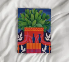 Un complesso e vivace motivo astratto di strisce verticali, simili a totem, riempite con varie forme geometriche, linee e motivi, che creano una composizione visivamente stimolante.