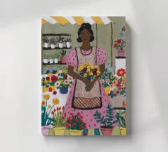 Questa opera d'arte presenta una pianta con lunghe foglie verdi e fiori rosa. Lo sfondo è costituito da forme astratte in rosa e verde, che aggiungono un tocco di eleganza al soggetto botanico.