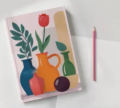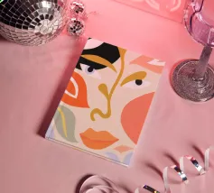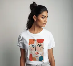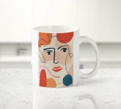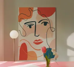 Un ritratto astratto moderno e minimalista creato con linee fluide e continue, che raffigura un volto dall'espressione dolce in una tavolozza di colori terrosi.