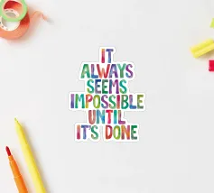 Aggiungete una ventata di positività al vostro spazio con questa vivace stampa tipografica, che riporta la frase "It Always Seems Impossible Until It's Done" (Sembra sempre impossibile finché non viene fatto) in caratteri acquerellati dipinti a mano su uno sfondo bianco. Il mix unico di colori vivaci e artigianato artistico crea un punto focale allegro e stimolante per qualsiasi ambiente. Perfetto come regalo per amici, familiari o per se stessi, si adatta a occasioni come compleanni, inaugurazioni o semplicemente per diffondere la gioia. Progettata per elevare e motivare, questa stampa è un'aggiunta elegante a uffici, salotti e spazi creativi.