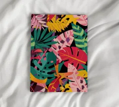 Una scena di una persona seduta su un tappeto leopardato, circondata da piante e libri. La composizione è una celebrazione colorata ed eclettica della contemplazione tranquilla in uno spazio vivace, moderno e personalizzato.