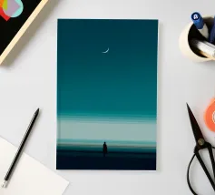 Un albero solitario si erge ai margini di un tranquillo paesaggio da sogno, dove il cielo di colore verde acqua si fonde con un orizzonte beige che sussurra. L'immobilità minimalista di quest'opera d'arte evoca solitudine, introspezione e la sottile forza della natura sospesa nel tempo.
